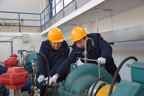 為保障嚴(yán)寒天氣下調(diào)水的安全穩(wěn)定,鄒平仁源周密部署、積極準(zhǔn)備,全力加強(qiáng)預(yù)報(bào)預(yù)測、巡查防守和應(yīng)急準(zhǔn)備。做好清淤工作,組織工作人員開展了胡樓引黃泵站攔污柵調(diào)水前清淤,同時組織檢修人員對潛水軸流泵進(jìn)行全面檢測維保,確保引水工作順利,引水水量達(dá)標(biāo)。加強(qiáng)預(yù)報(bào)預(yù)測,中控室全面把控各項(xiàng)數(shù)據(jù)監(jiān)測,通過自動化調(diào)度和信息化系統(tǒng),緊盯氣溫、水溫及進(jìn)水泵站進(jìn)水情況,保障泵站設(shè)備運(yùn)行安全穩(wěn)定。保障巡查防守,加強(qiáng)對引黃渠道的巡查力度,安排專人每日往返60多公里的黃河干渠,進(jìn)行河道巡查、測流等保障任務(wù),并有序開展河道破冰除冰工作,及時處理因持續(xù)低溫導(dǎo)致的渠道過流能力下降等問題,保證渠道過水暢通,確保調(diào)水工作運(yùn)行有序。