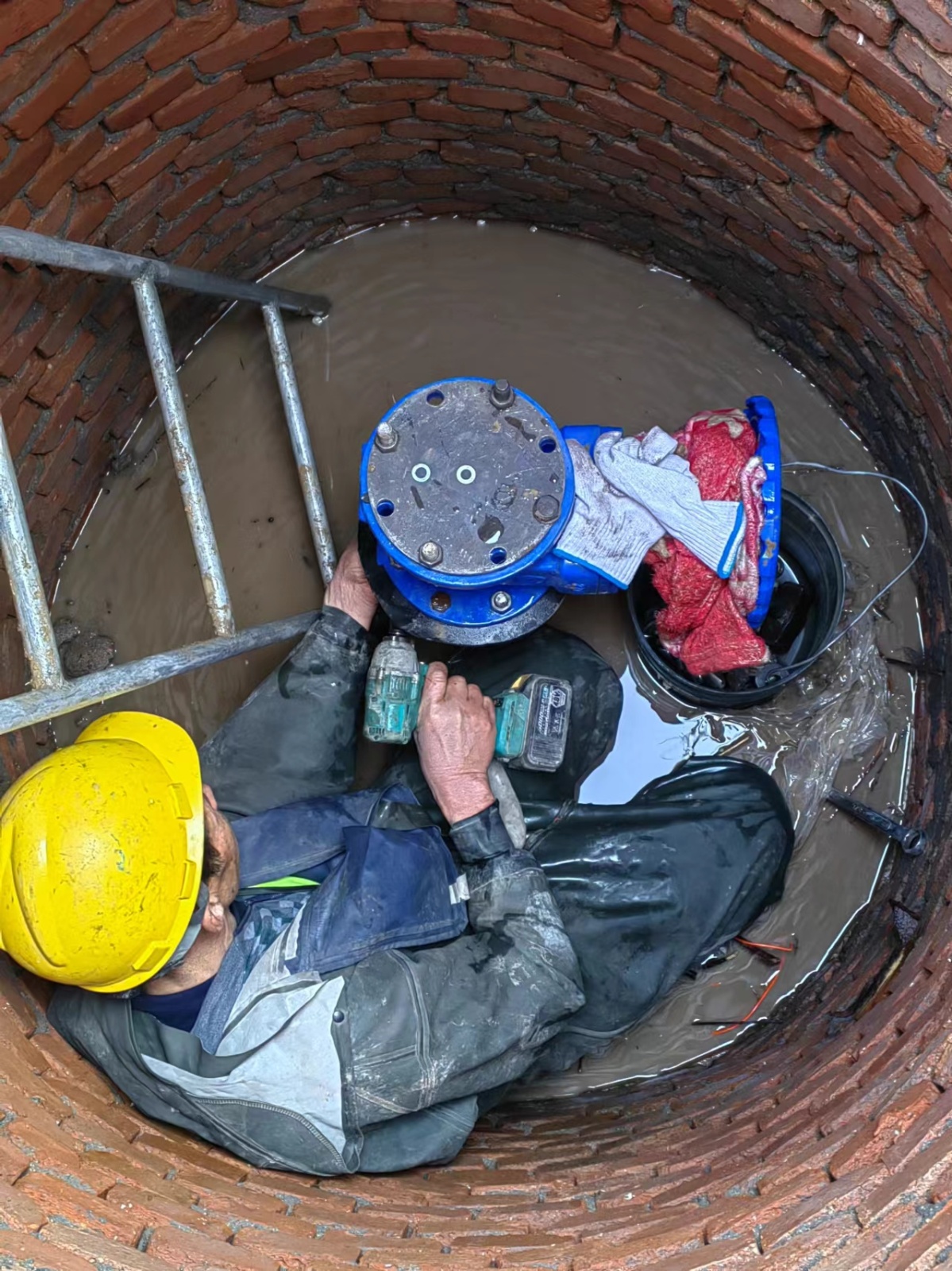 漏水現(xiàn)場位于海豐路與S309省道交叉口附近,漏水管道為DN800PE供水主管道,噴出的水柱高達(dá)10余米,由于主管道水壓高、漏水量大,搶修現(xiàn)場一片泥濘,為盡快修復(fù)受損管道,縮短停水時(shí)間,搶修隊(duì)緊急調(diào)拔兩臺(tái)大功率水泵同時(shí)排水,搶修隊(duì)員不顧天氣寒冷、作業(yè)空間狹小,泡在齊腰深的冰水里,接力作業(yè)、無縫配合,搶時(shí)間、拼進(jìn)度,快速排查漏水原因及損壞點(diǎn)、更換配件補(bǔ)漏,經(jīng)過近4個(gè)小時(shí)的全力搶修,到下午2時(shí)成功修復(fù)了受損管道,全面恢復(fù)供水,解決了群眾用水之急。