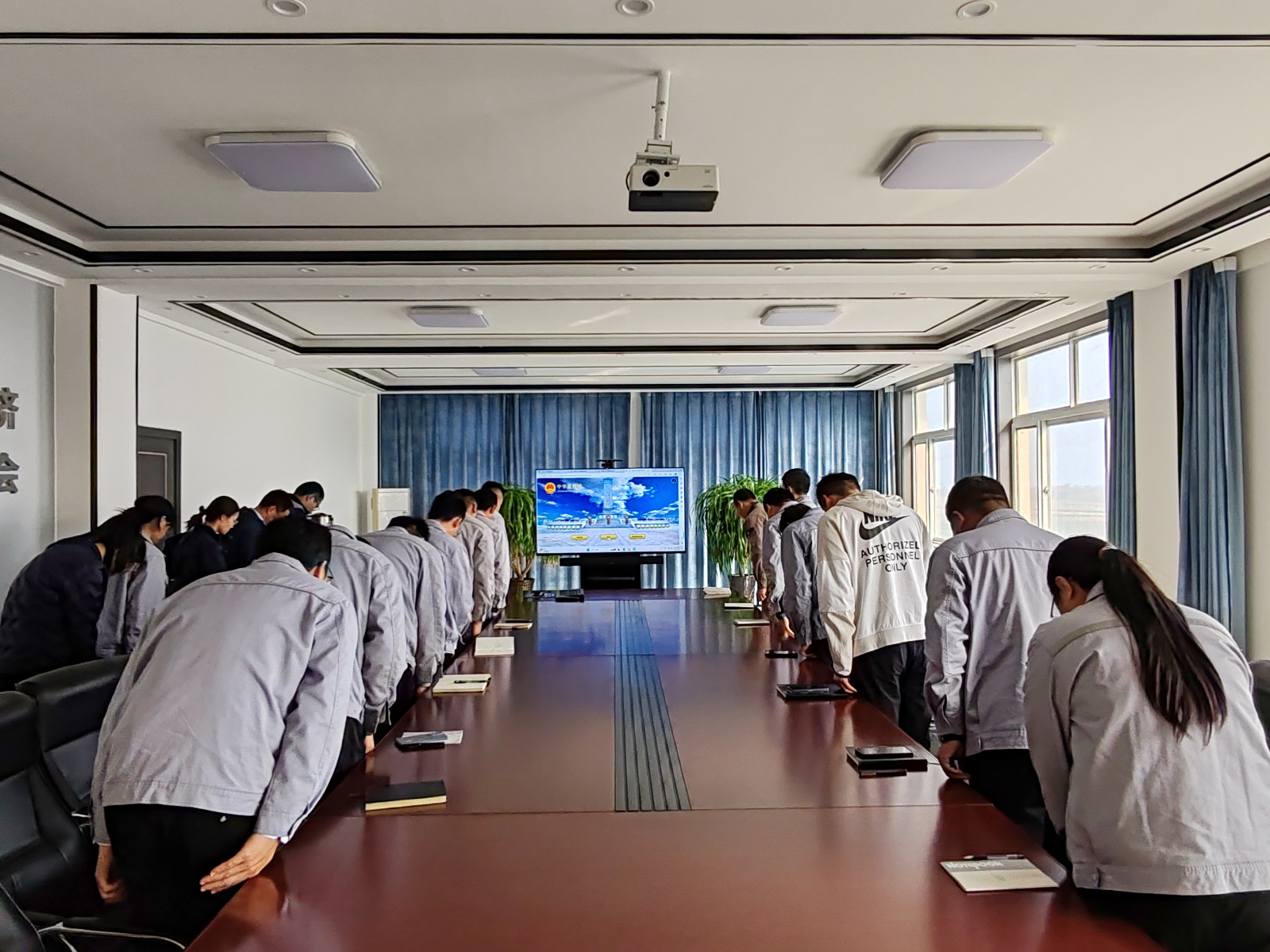 活動(dòng)現(xiàn)場(chǎng)全體干部職工一起觀看了宣傳片《你記得我我就活著》,影片中革命先輩感天動(dòng)地的信仰故事、熠熠生輝的理想光芒,激勵(lì)指引著一代又一代共產(chǎn)黨人在一程又一程新的長(zhǎng)征上接力前行,砥礪奮進(jìn)。理想信念如火炬、如明燈,照耀著我們一往無前的奮斗征程。觀影結(jié)束,大家整齊列隊(duì),莊嚴(yán)肅立,以集體鞠躬的方式深切緬懷犧牲生命的革命先烈,追思他們不怕犧牲、無私奉獻(xiàn)、忠誠為民的崇高革命精神。